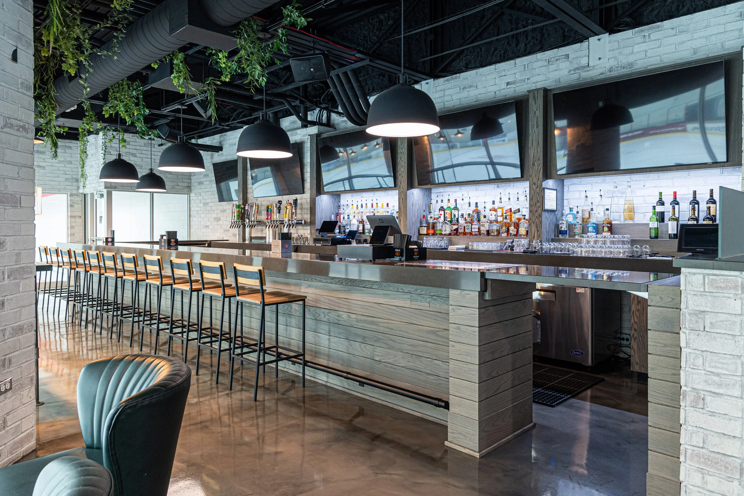 The 110,000 square foot arena offers three regulation NHL sheets of ice and parking for approximately 600 guests. The facility provides spectator seating for 450 fans at each rink and includes 22 team locker rooms, a full-service pro shop (Jerry’s Hockey), and an academic lounge. Panoramic views of the rinks are provided in temperature-controlled indoor spaces at Big Fish’s Icehouse onsite restaurant and lounge.